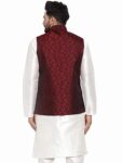 Look your ethnic best by wearing this Nehru jacket from Jompers, which has been designed keeping the latest trends in mind. Tailored from fine quality fabric and fashioned with a banded collar for a dash of style. This Nehru jacket is comfortable to wear and easy to maintain. Layer it over any outfit for a contemporary look. It is a great addition to your wardrobe and will win you compliments from one and all.