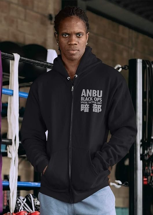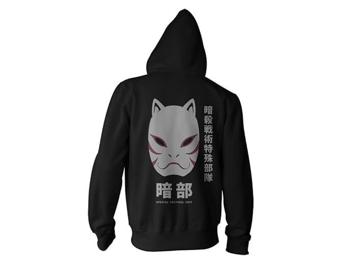 shippuden Anbu Black OPS Adult Zip Hoodie Large Black
